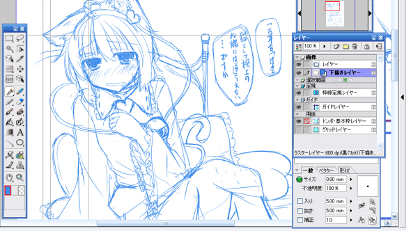 そもそも、このまま仕上げまでコミスタを使い続けるかどうかからですが。トーン作業をフォトショってのも一つの手ですし、線画をsaiでやろうかとか、でもコミスタのコマ割機能とかトーンの張替えって楽だよね、とか色々と考え中です。